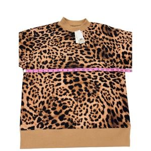 BP Mock Neck Graphic Sweatshirt In Tan Simple Leopard Print SZ-XSmall