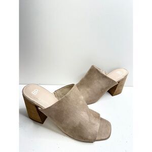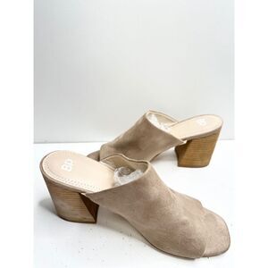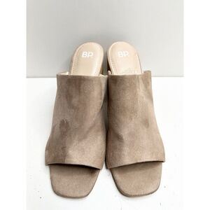 BP Mules Womens Size 10 Tan Slip On Open Toe Block Heel Fabric Upper