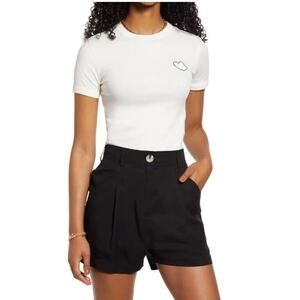 BP. NEW $25 Heart Embroidered Crop Ringer Tee in Ivory Small