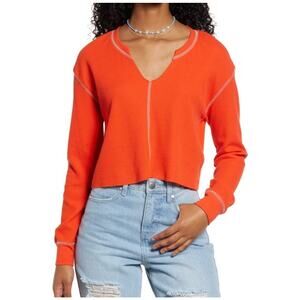 BP NEW Women's Orange Fiesta Cropped Knit Long Sleeve Henley Sz XS Oversize Fall