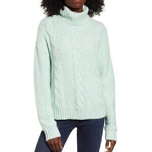 BP NORDSTROM Cozy Cable Knit Turtleneck Sweater Mint Green Chunky Knit Winter L