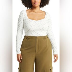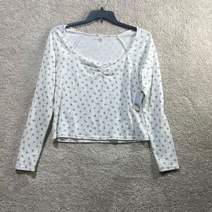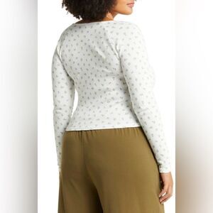 BP. NWT Floral Print Thermal Long Sleeve Baby Tee in Ivory Blue Rosette Ditsy 4X
