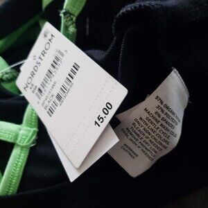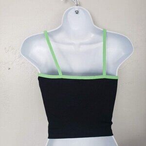 BP. NWT Women's XS Black Brami Cropped Tank Top Bralette Green Trim V-neck