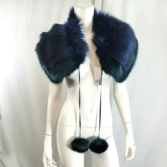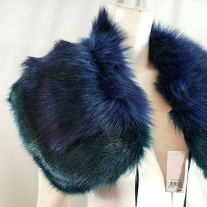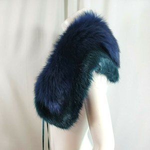 Luxurious faux fur scarf. Deep navy blue color. Elegant and stylish.