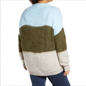 BP Nordstrom Oversize Brushed Stripe Sweater Top S Green Blue Colorblock Cozy