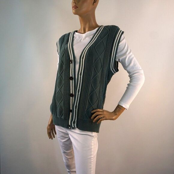 BP Nordstrom Oversized Cable Knit Sweater Vest In Green Size XS Preppy Unisex