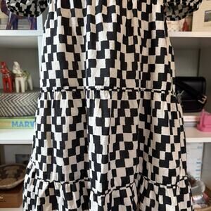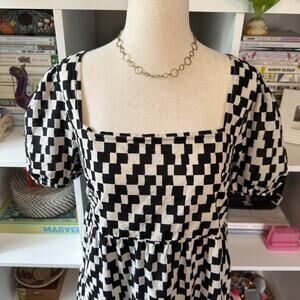 BP Nordstrom Tiered Abstract Print Square Neck Babydoll Dress Black Wms S