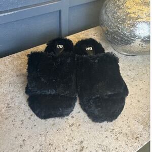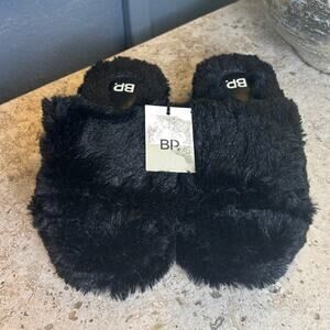BP Nordstrom Womens Black Slip On Slides Faux Fur Slippers 5-6 NWT