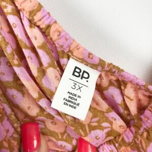 BP Nordstrom Womens One Shoulder Top 3X Tan Pink Allison Floral Lightweight