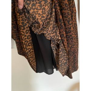 BP. Nordstrom shirred ruffled mini leopard square neck cute summer dress 0044