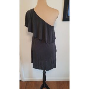 Beautiful one shoulder Ruffle dress with pockets by BP in a black womens size XS. See photos for chest measurement, lots of nice stretch in this dress. Just above the knees.