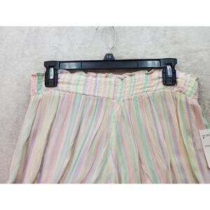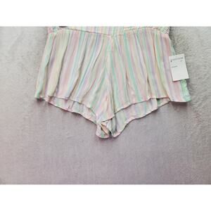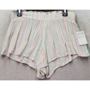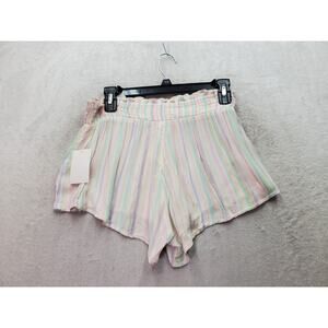 BP Pajama Shorts Women's Medium Multi Striped 100% Rayon Pleated Elastic Waist