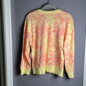 This pink and yellow printed crewneck sweatshirt is a casual and comfortable addition to your closet. Long sleeves and great for a relaxed weekend day.