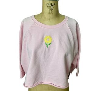 BP. Nordstrom Pink Cropped Sweatshirt with Embroidered Yellow Flower