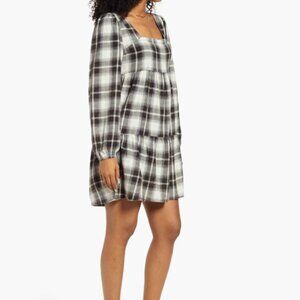 Chic plaid pattern. Long sleeves. Square neckline. Flowy silhouette.