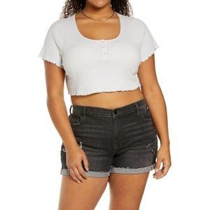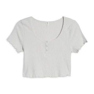 BP. Pointelle Rib Crop Henley in Grey Fog - NWT