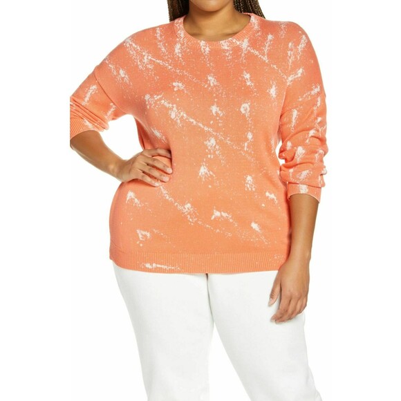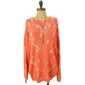 BP Pullover Sweater Top Plus 2X Long Sleeve Splatter Print Coral Camellia NWT B6