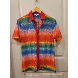Be Proud By Bp Gender Inclusive Floral Lace Button-up Shirt In Red Multi Rainbow Ombre