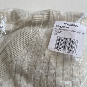 BP. Reagan Rib V-Neck Crop Ivory Sweater, Size XS, NWT