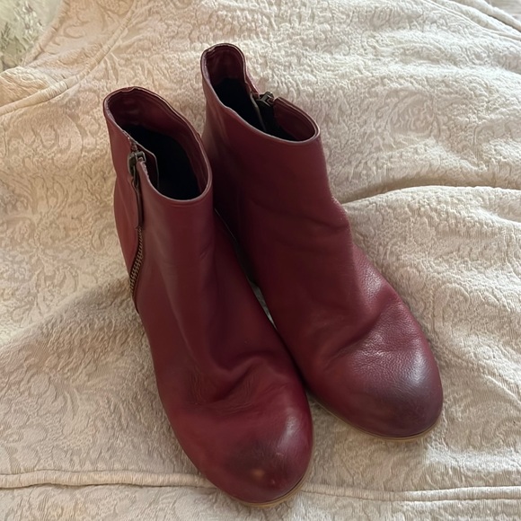 BP, Nordstrom brand women’s red booties. All leather. Functional zipper for ease getting on and off. 3 inch heel, 5 inch shaft. Super versatile for casual or evening looks.