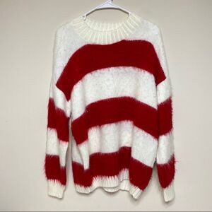 BP Red and White Striped Sweater Oversize XS Women Brushed Pullover