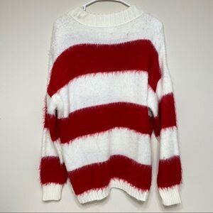 BP Red and White Striped Sweater Oversize XS Women Brushed Pullover