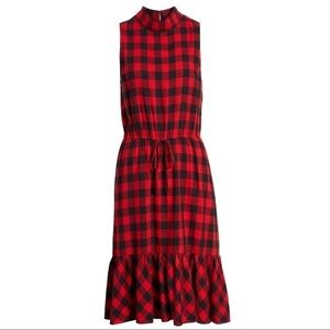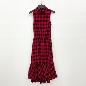 BP Ruffle Hem Plaid Midi Dress XXS Buffalo Check