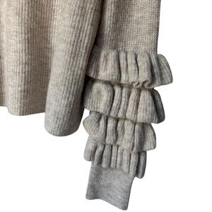 BP Ruffle Sleeve Beige Tan V-Neck Sweater, Oversized, XL