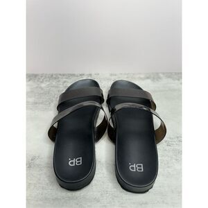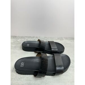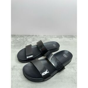 BP Sandals Womens Size 7 Black Double Strap Open Toe Slip On Glittery Slides