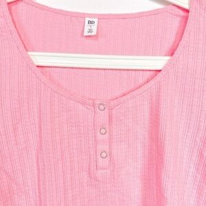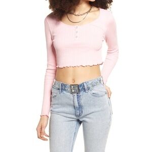 BP. Scoop Neck Long Sleeve Crop Henley In Pink Candy Size Small S