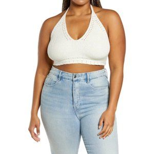 BP Shaker Stitch Sweater Halter Top Stretch Crop Tank Top Ivory Plus Size 3X