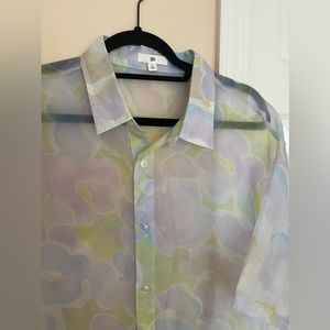 BP Sheer Button Down Short Sleeve Shirt feels like a tulle material very soft and versatile
