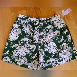 Green abd white Fauna print short by BP, with button fly detail, size M