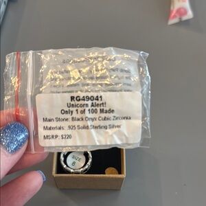 This unique BP ring showcases a sleek silver and black design with a distinctive combination lock style. The rotating number dials add a functional twist to its elegant appearance, making it a standout piece in any jewelry collection.
