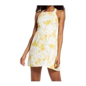 Sunny blooms brighten this breezy cotton mini styled with a square neckline and a lightly flared skirt.