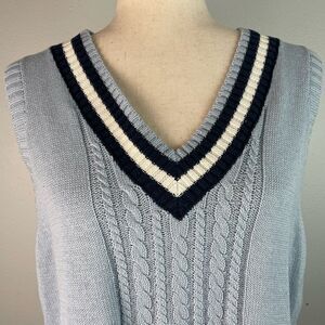 Stylish and super cute sleeveless vneck sweater by BP. Measures 18 inches armpit to armpit laying flat and is 19 inches in length from the shoulder to the hem.