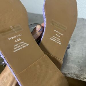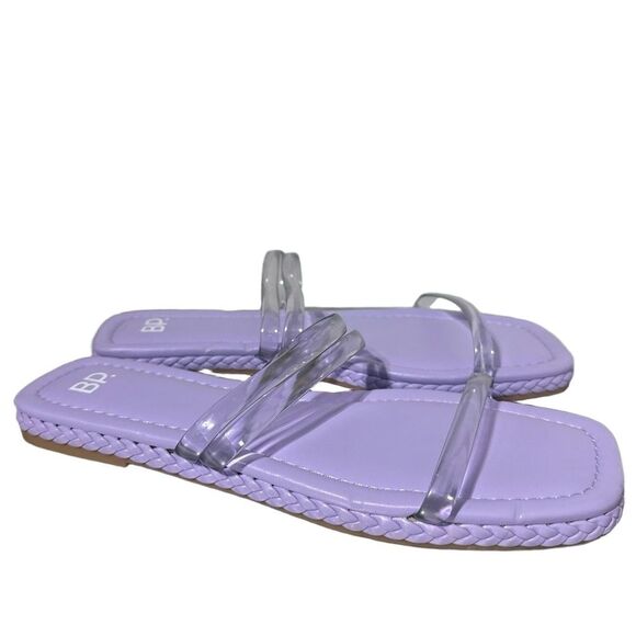 BP Slide Flat Sandals 8.5 Minimalist Trendy Vacation Clear Straps Purple Viola