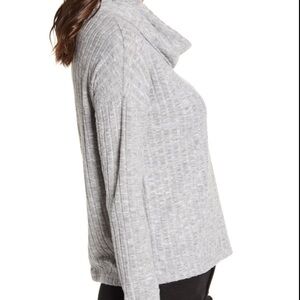 A slouchy turtleneck enhances the cozy ease of this ribbed triblend top.