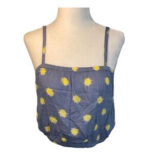BP Summer Breeze Sun Print Top Blue Yellow Chambray Cropped Halter M