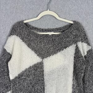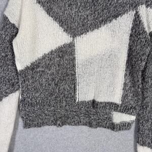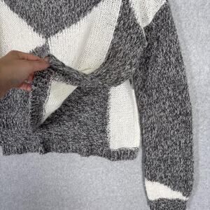 BP Sweater Medium Cream Colorblock Marled Crop High Low Slit Sides Streetwear Womens Gray Geometric Pullover Knit