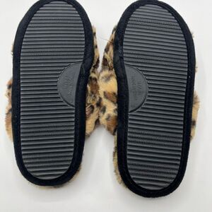 BP. Sz M 7 / 8 Animal Print Slippers Open Toe Crisscross Furry Fuzzy