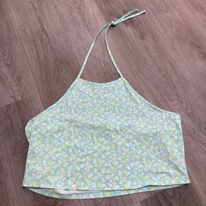 BP. Teal Ivory Allison Halter Top Floral Blue Green 3X Crop Nordstrom