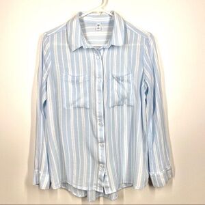 BP button up blouse. Blue and white striped. High low hem. Very soft material. Only worn one time, excellent condition. One spot on back where the thread is a little thicker - see picture.