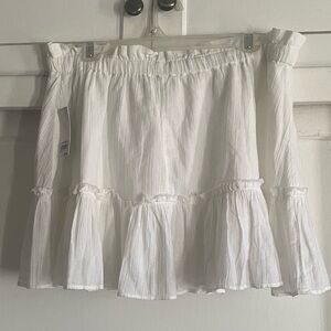 BP. Tiered Ruffle Miniskirt In White. New With Tags. Elastic/Drawstring Waist. Lined. 100% Cotton. Machine Wash- Tumble Dry.