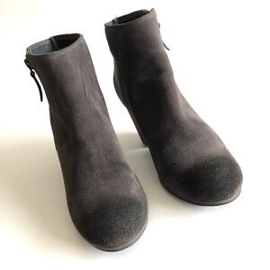 BP Trolley suede ankle ankle booties in excellent gently used condition. Gray suede with burnished toes and heels, outside zip, stacked brown heel. See pictures for heel height.