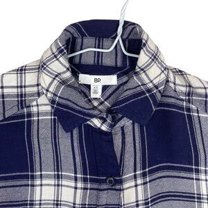 BP Tunic Top Womens Size Extra Small XS Blue Plaid Long Sleeve Button Up