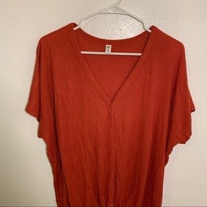 BP. V-Neck Button Down Tie Front Top Rust Orange M