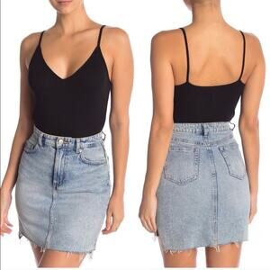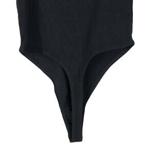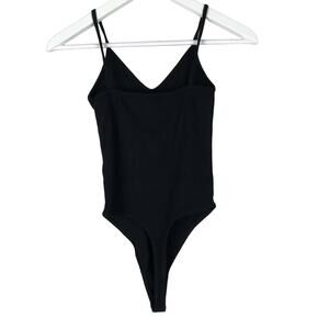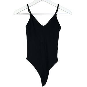 BP V-Neck Ribbed Thong Bodysuit Black XXS NWT Basics Layering Minimalist Knit