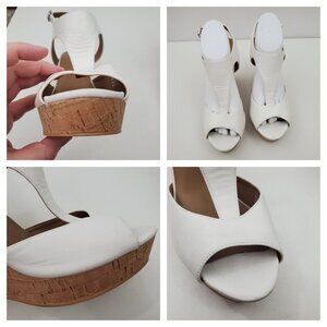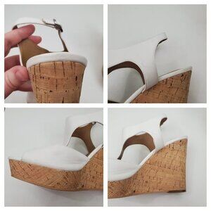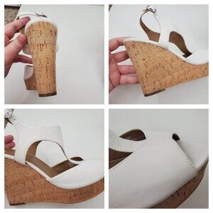 BP Wedges 10 M White Cork Brown Peep Toe Slingback Vegan Faux Leather Strappy