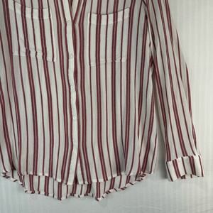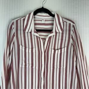 B.P. White Red Stripes Viscose Button Up Shirt Junior Size Large Nautical Prep